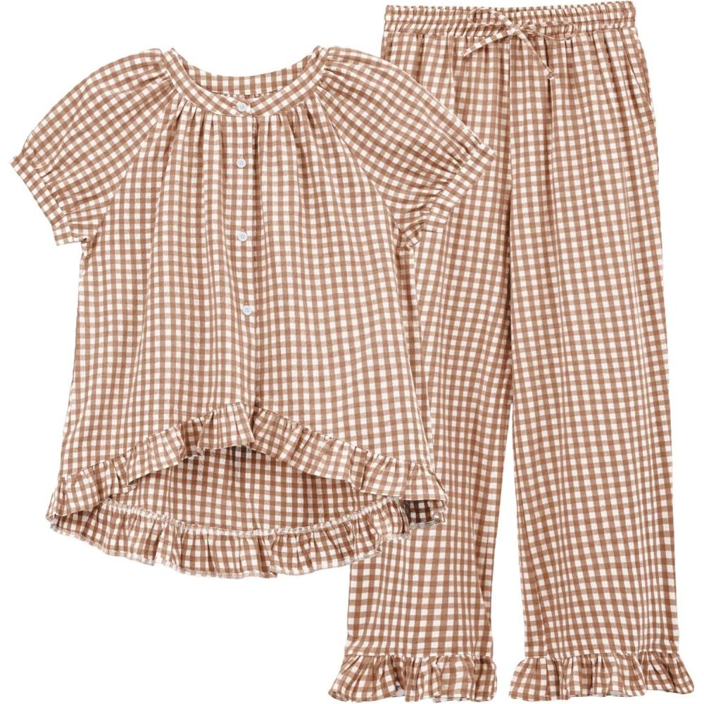 Be the first to review “Tanming 2 Piece Sets for Women Gingham Button Down Short Sleeve Tops Ruffle Plaid Pants Pajamas Lounge Set(Brown)” Cancel reply