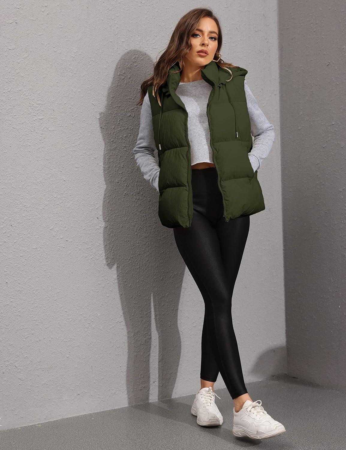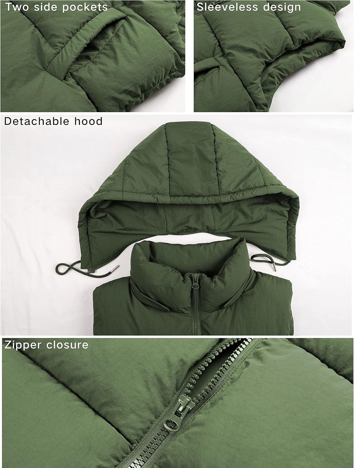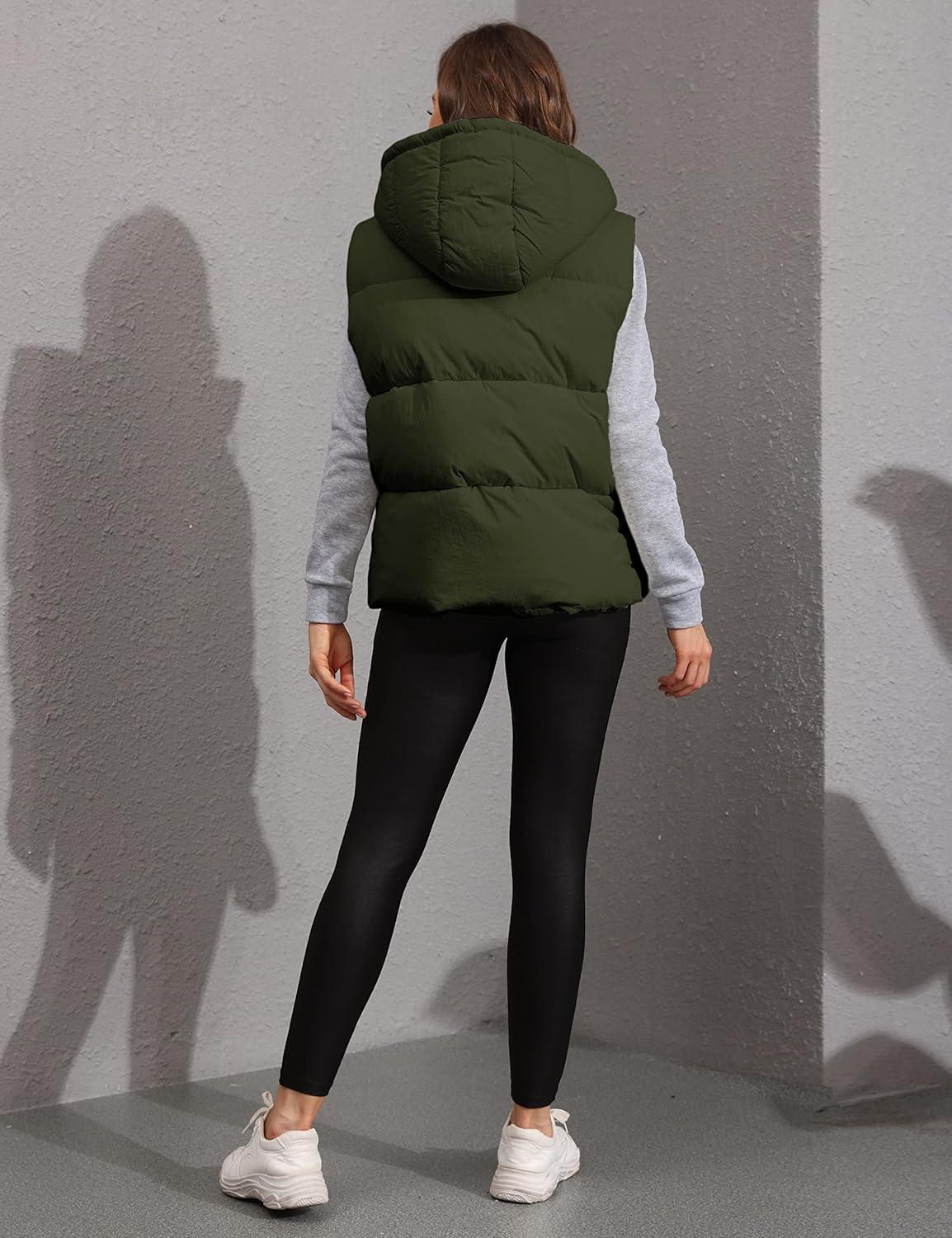 Tanming Black Puffer Vest Women Zip Up Lightweight Sleeveless Winter Outerwear Vests with Hood(Army Green)