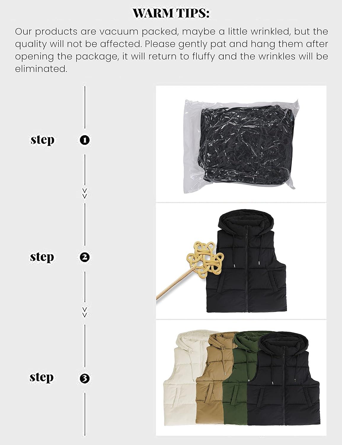 imageTanming Black Puffer Vest Women Zip Up Lightweight Sleeveless Winter Outerwear Vests with HoodBlack