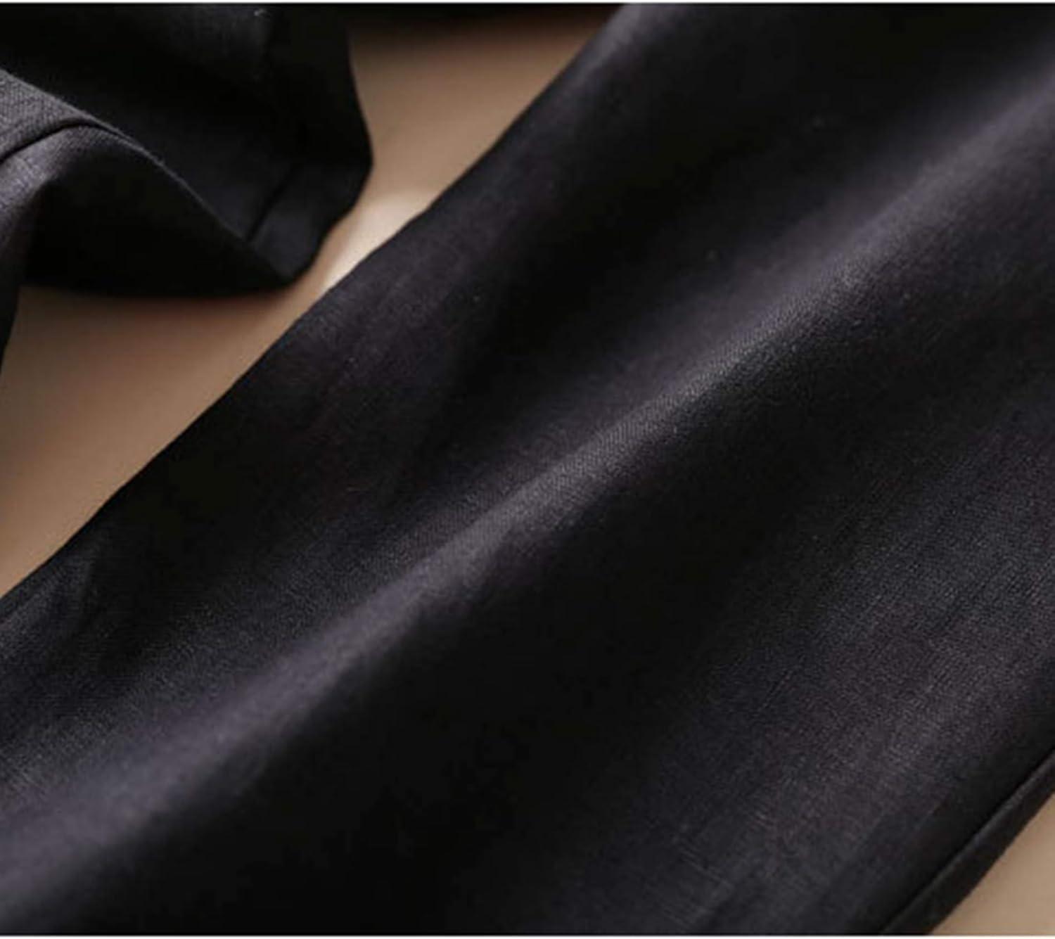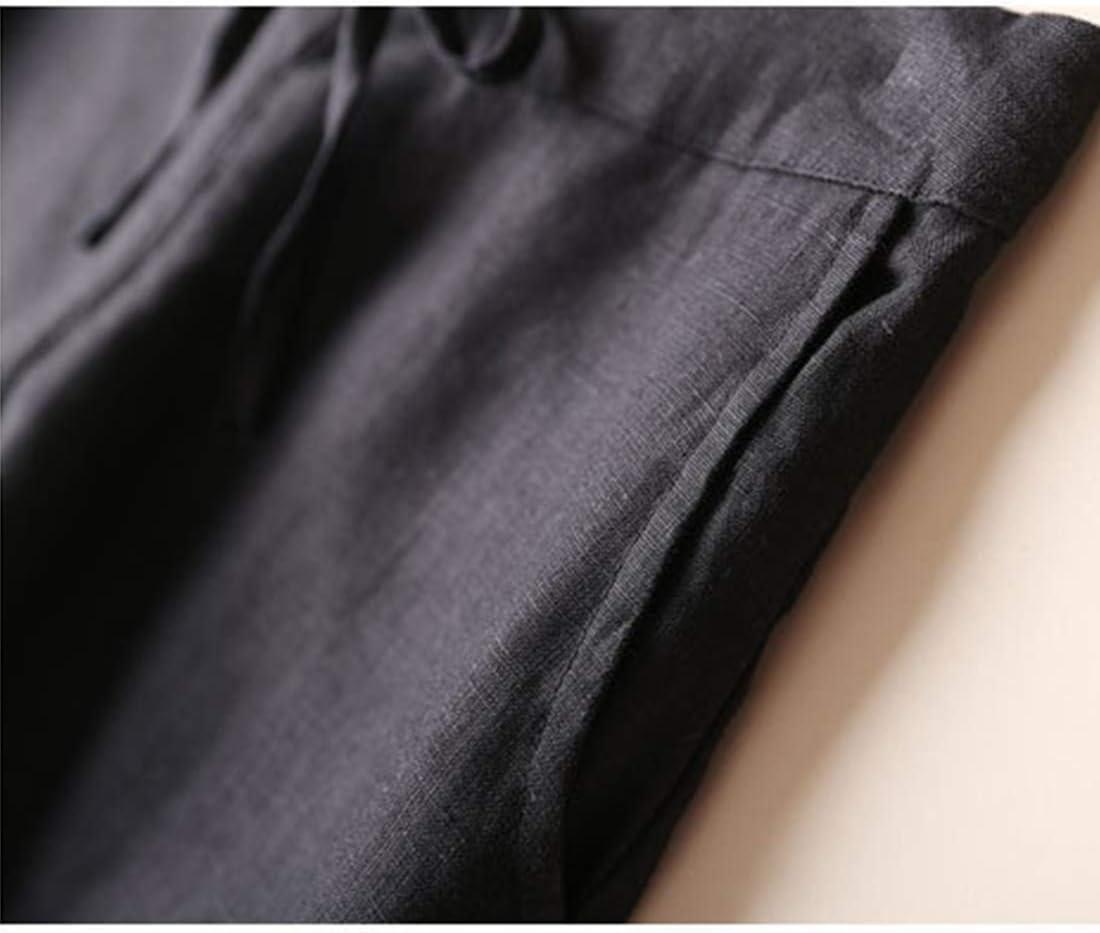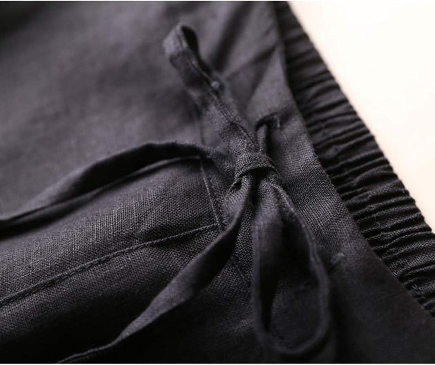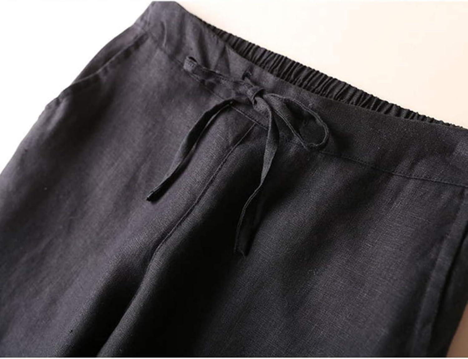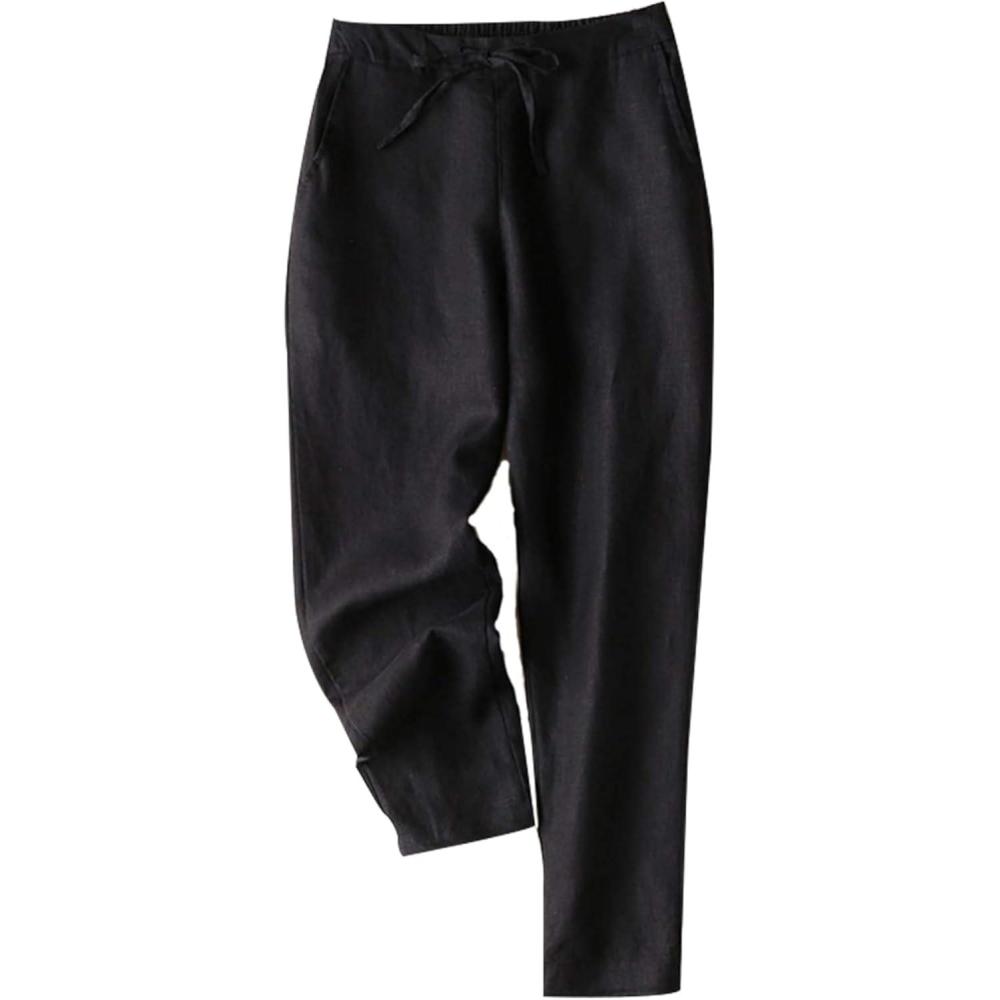 Tanming Linen Pants for Women Summer Casual High Waisted Drawstring White Beach Pant(Black03)