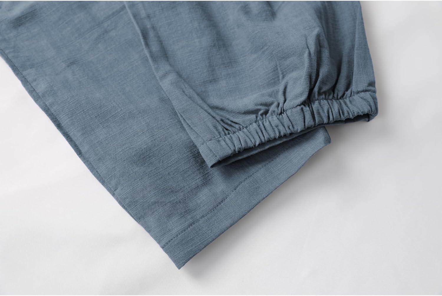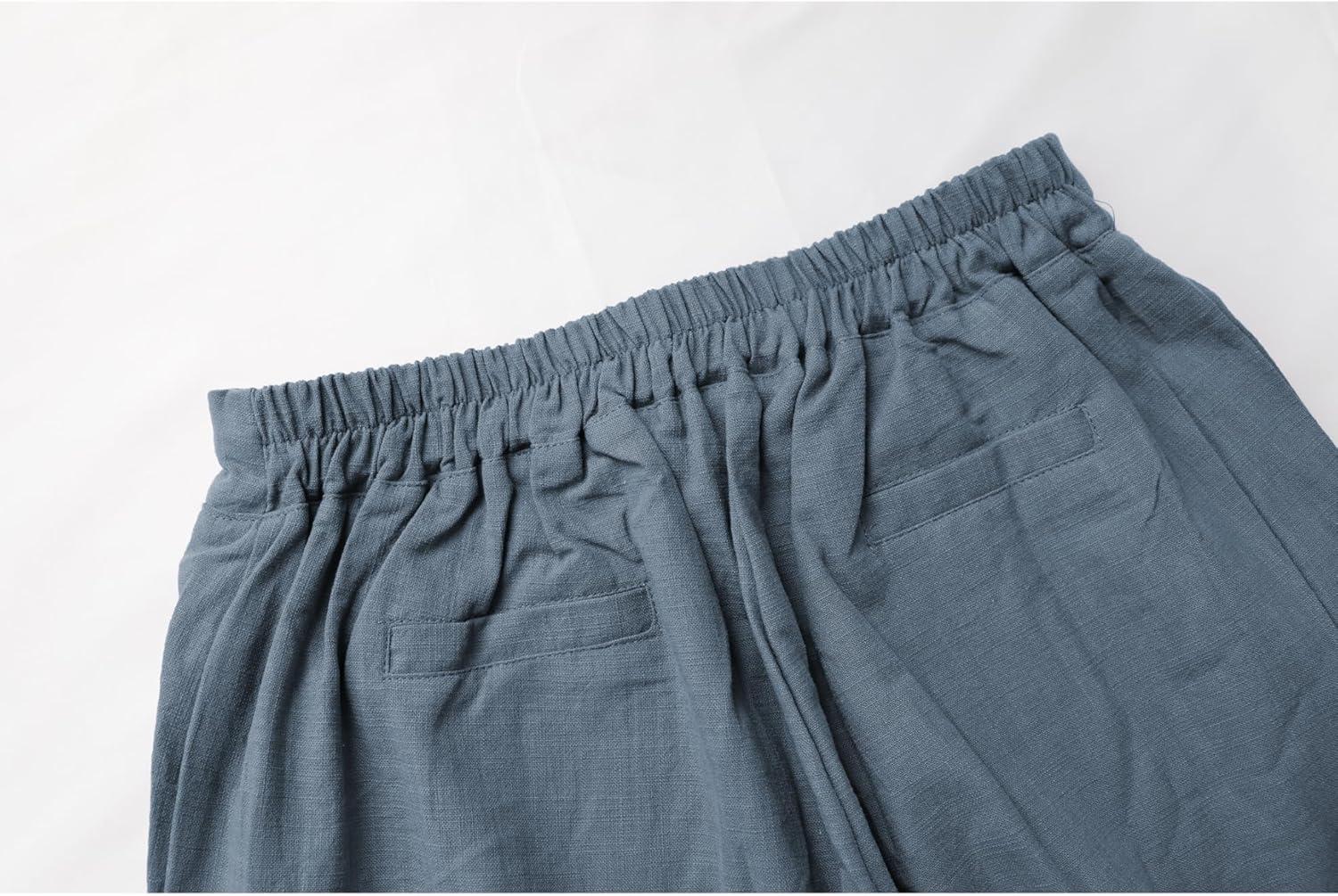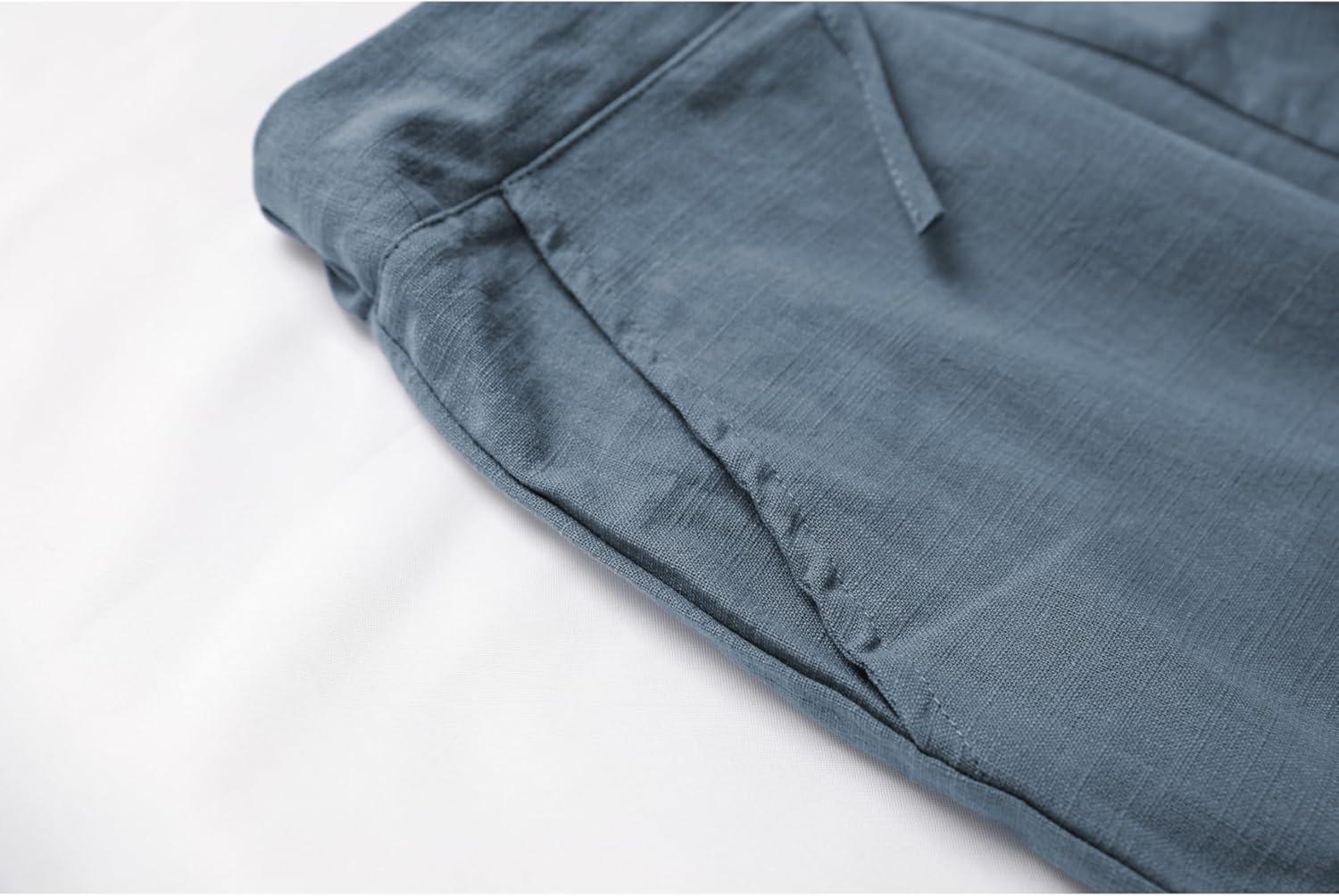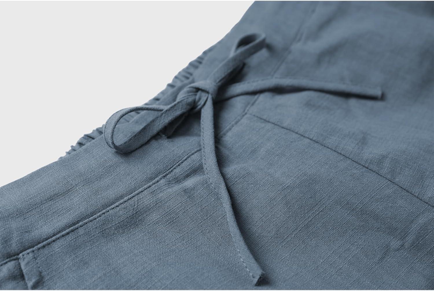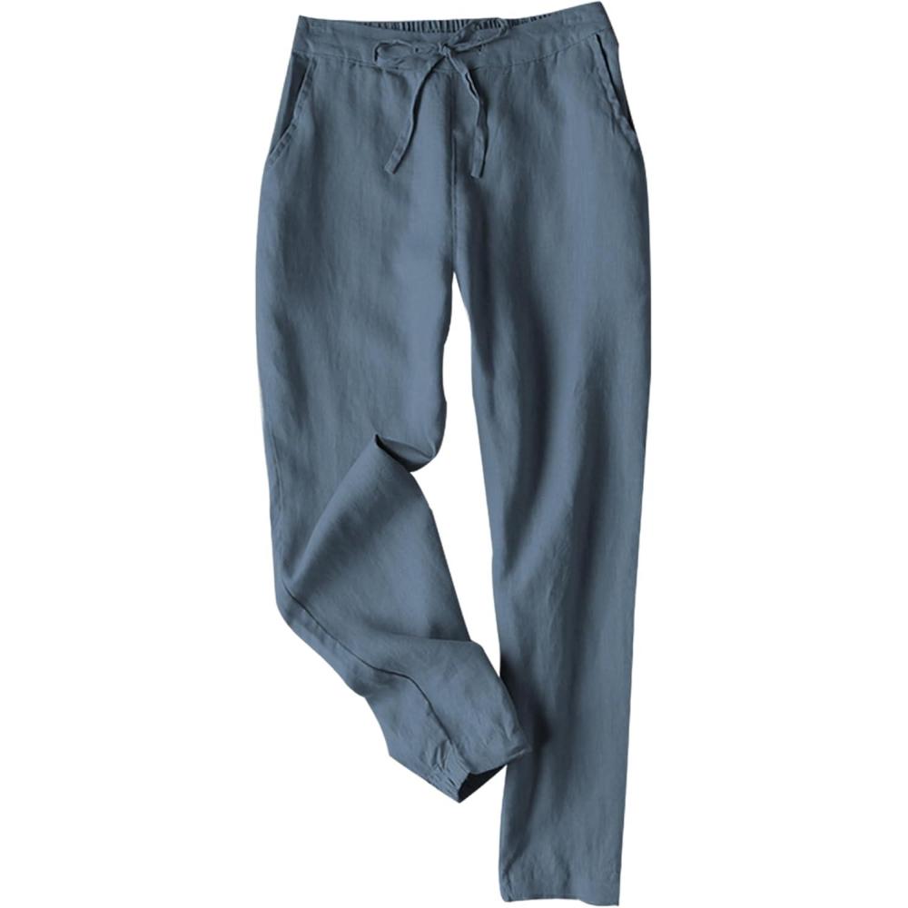 Tanming Linen Pants for Women Summer Casual High Waisted Drawstring White Beach Pant(Bluegrey)