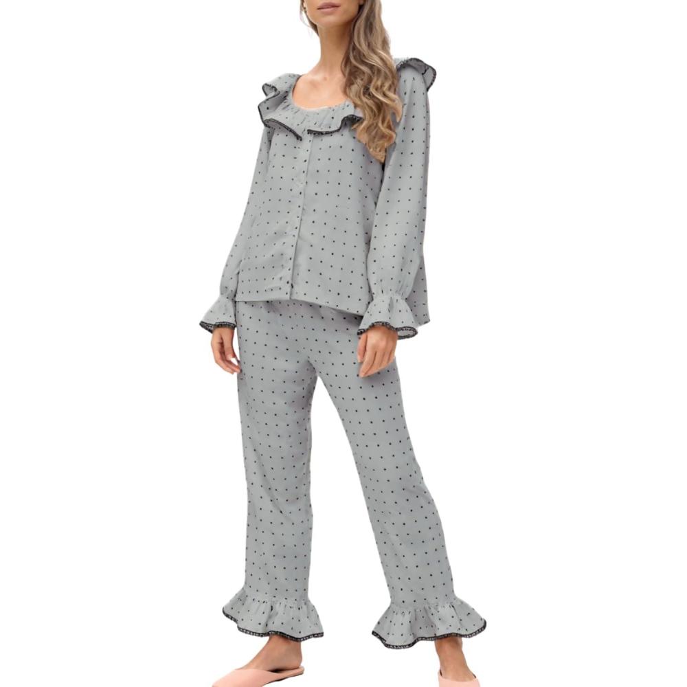 Tanming Pajamas for Women Set Polka Dot Set Ruffled Collar Top Elastic Waist Pants Casual Pajama Set Two Piece Sleepwear(Grey)