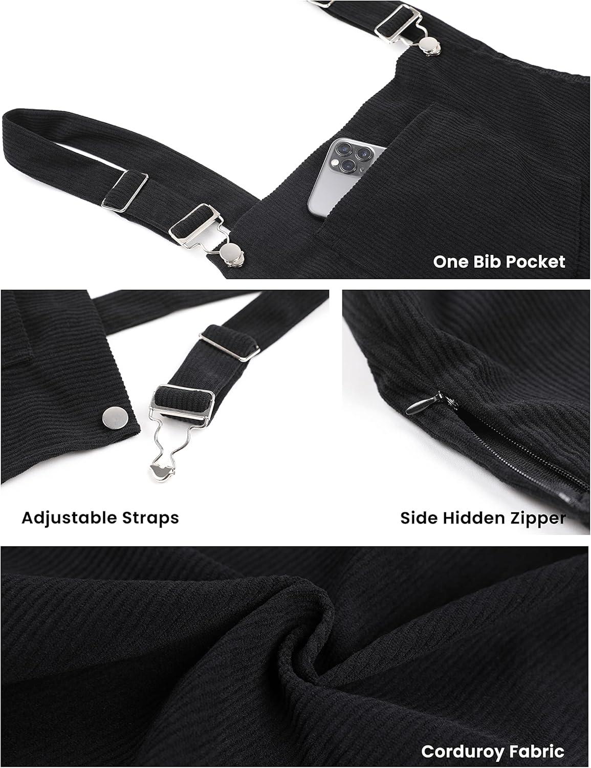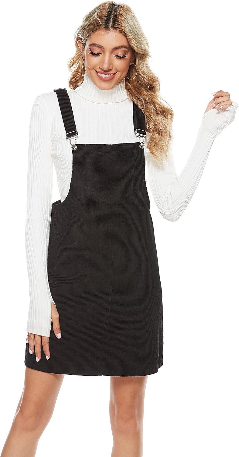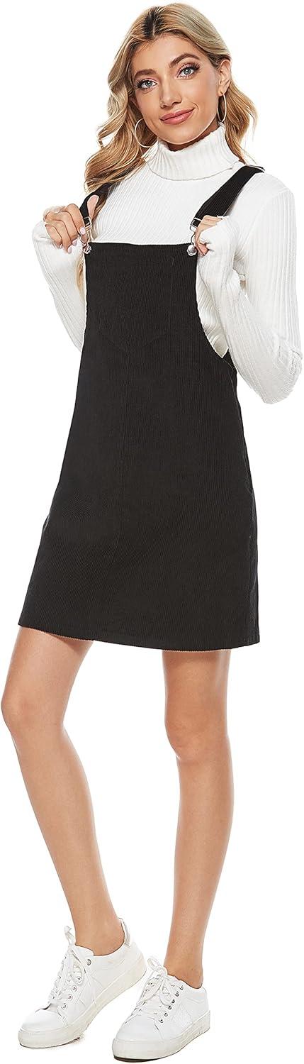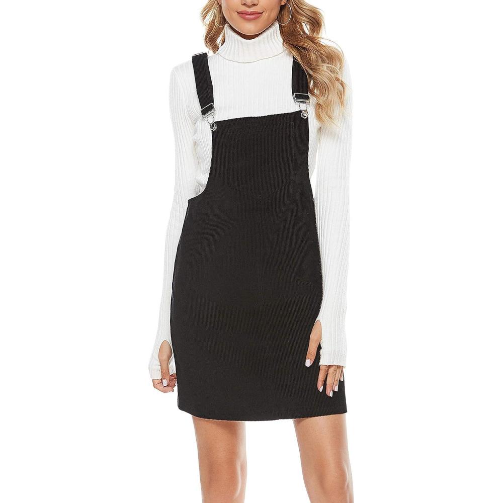 Tanming Women’s Corduroy A Line Cute Jumper Pinafore Bib Overall Mini Dress Skirt(Black)