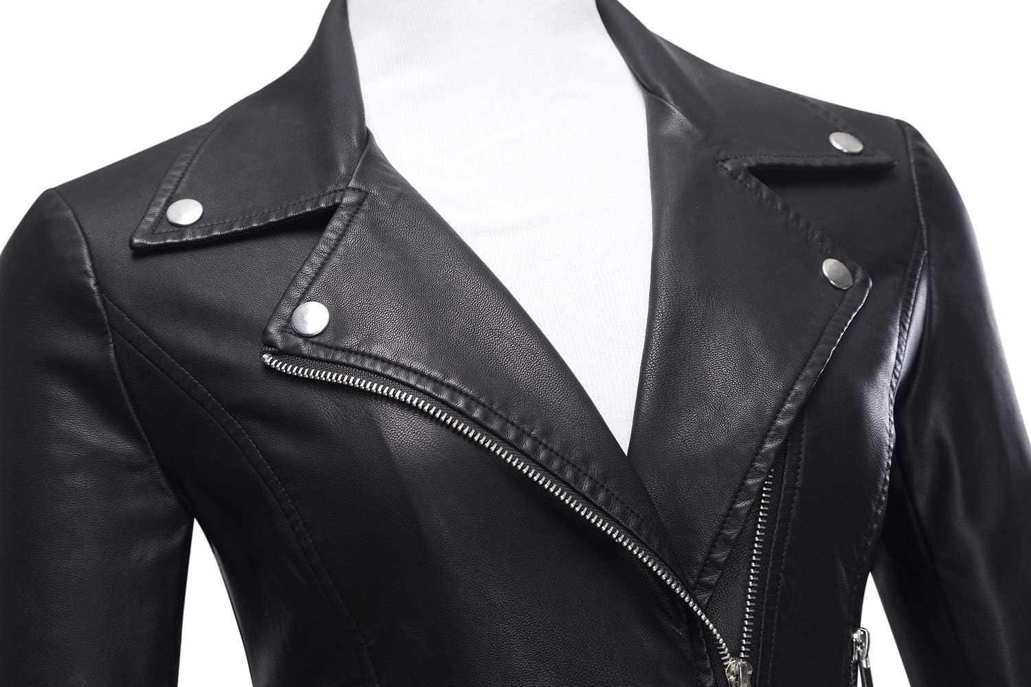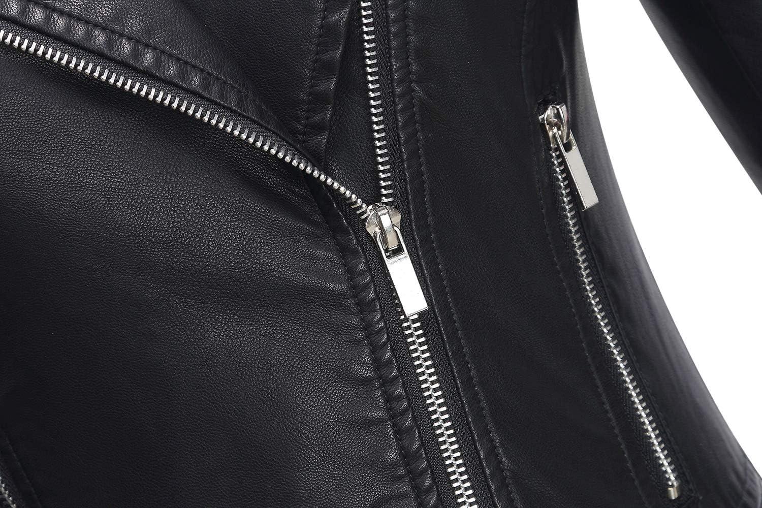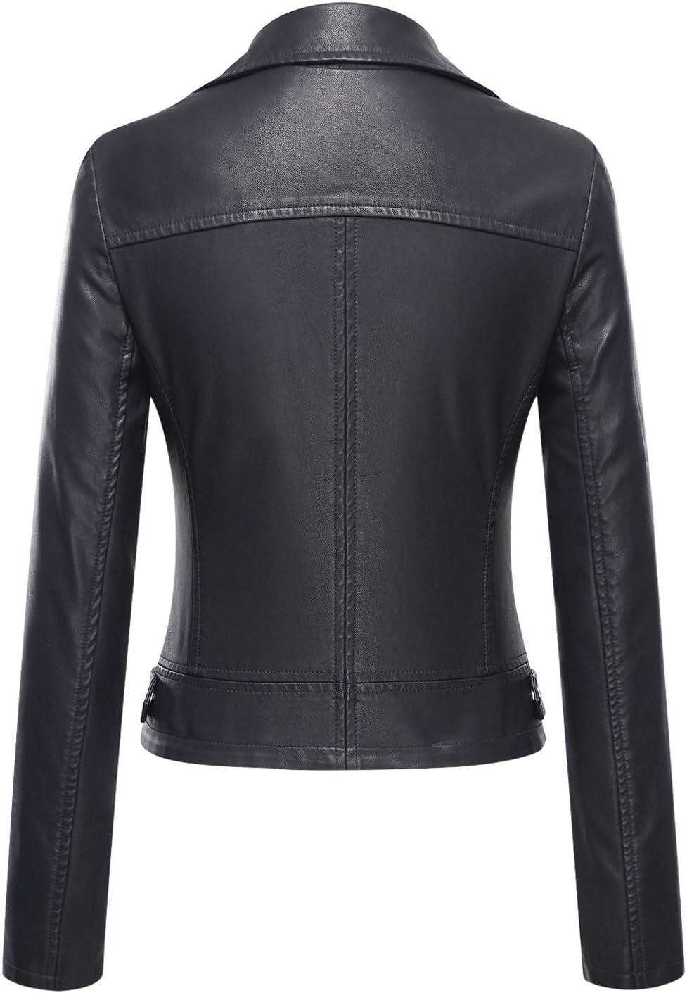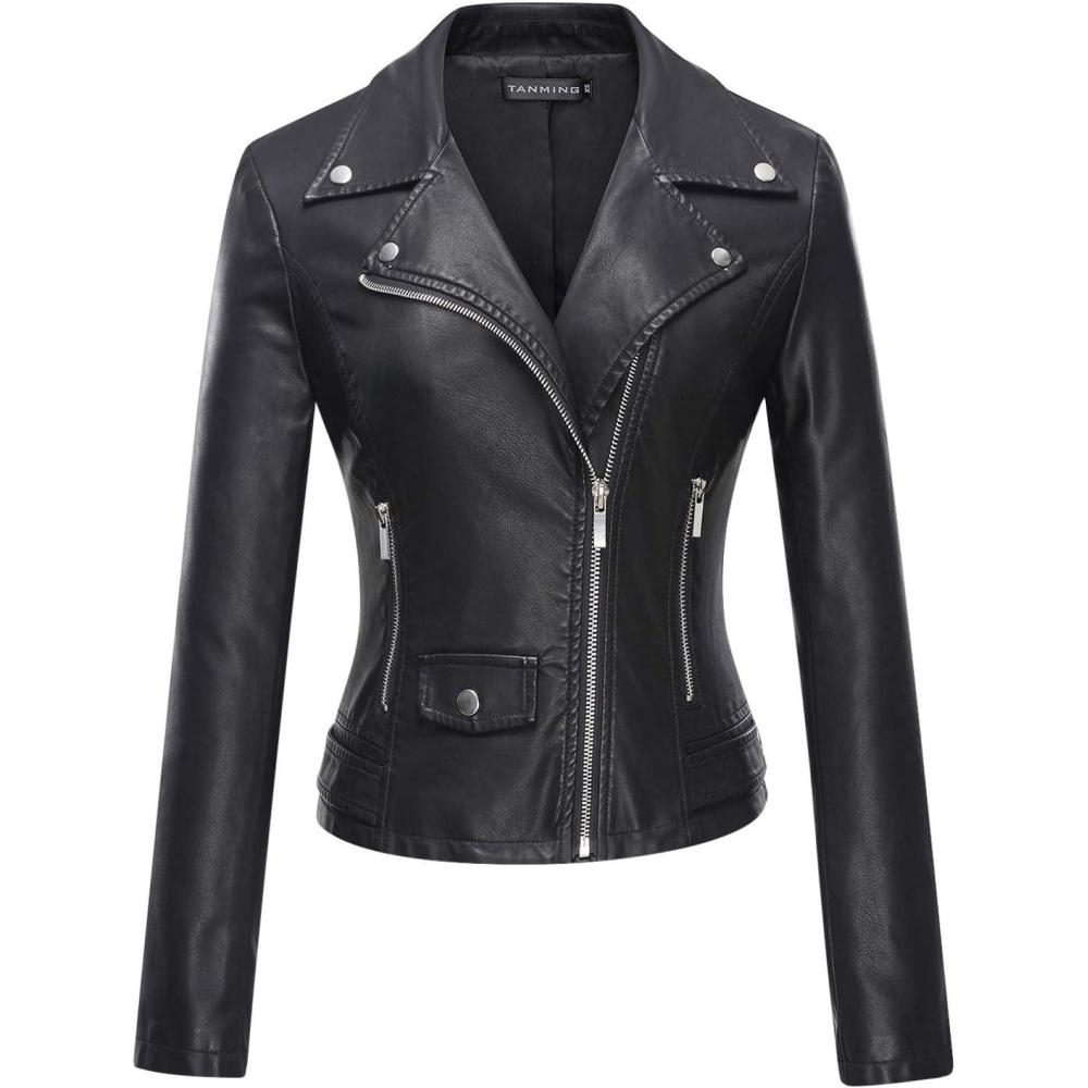 Tanming Women’s Faux Leather Moto Biker Short Coat Jacket(A Black)