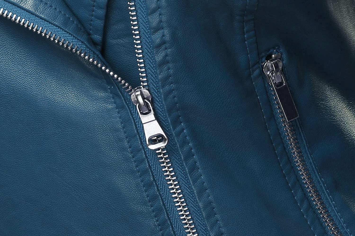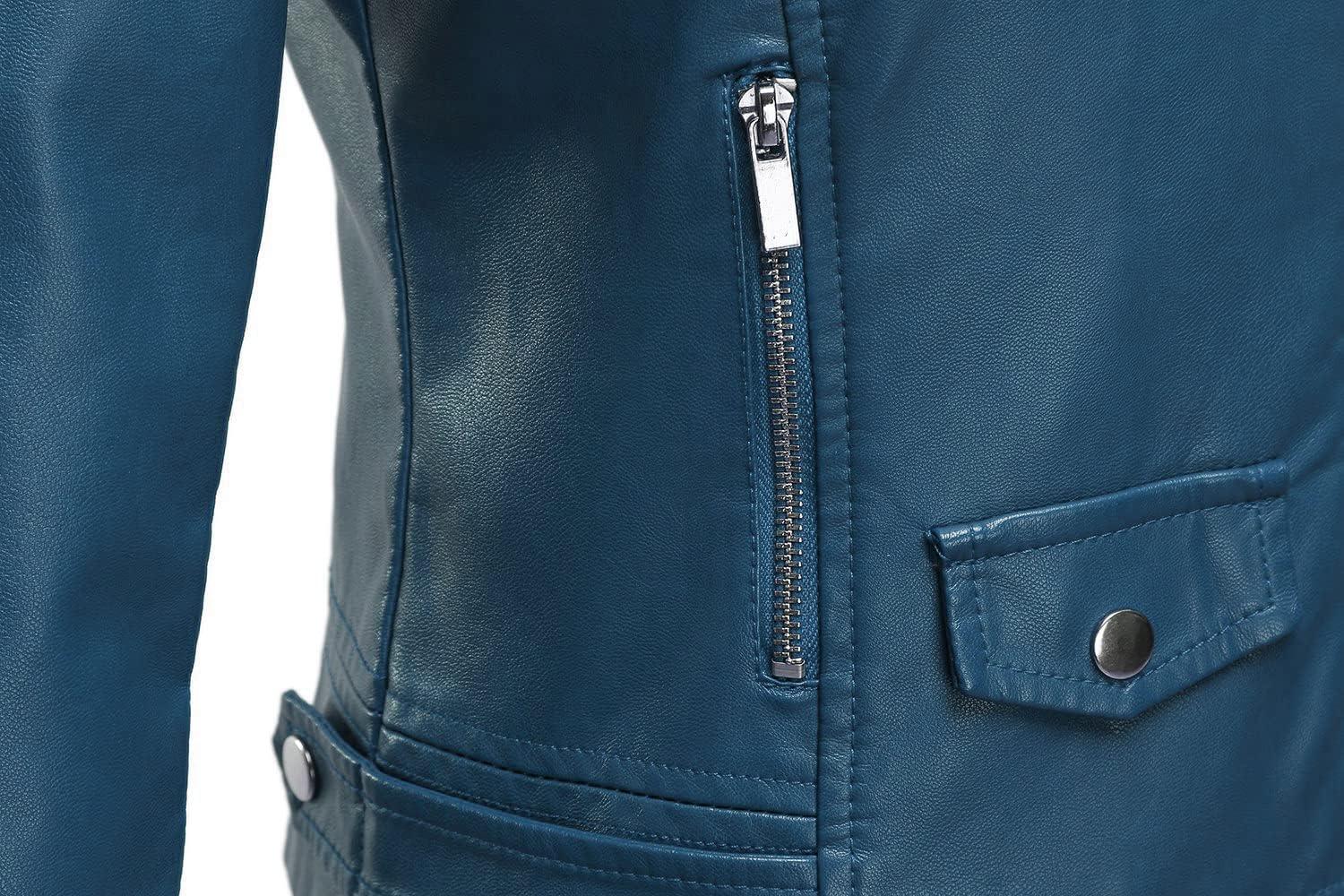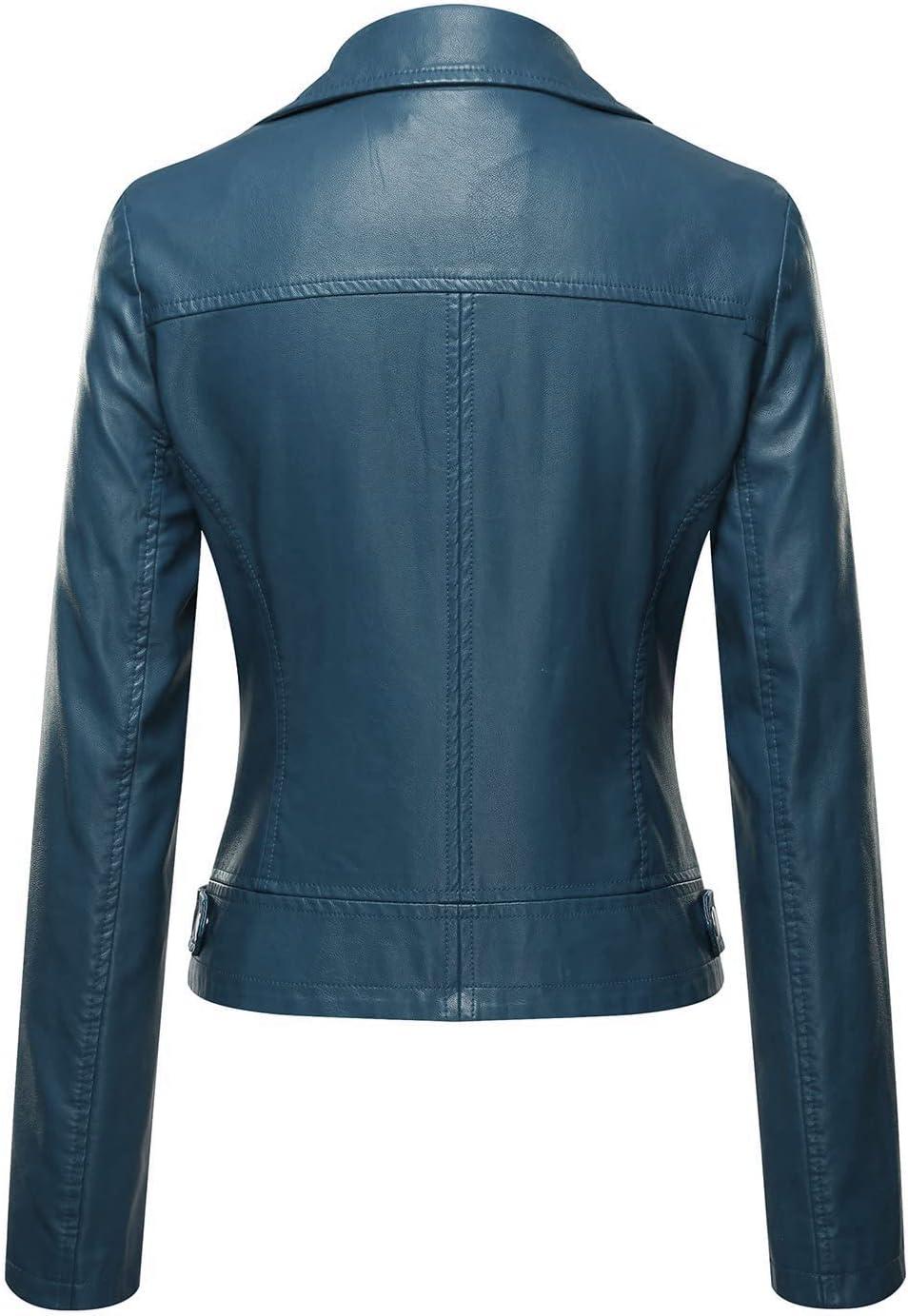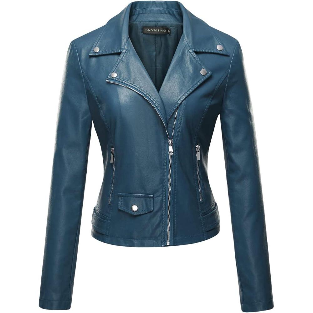Tanming Women’s Faux Leather Moto Biker Short Coat Jacket(A Blue)