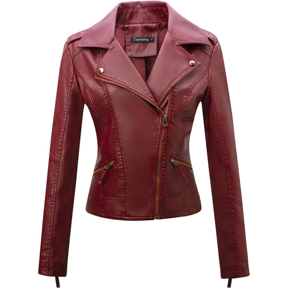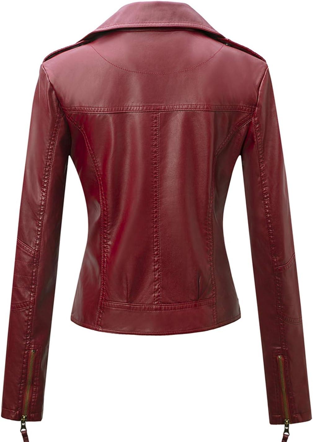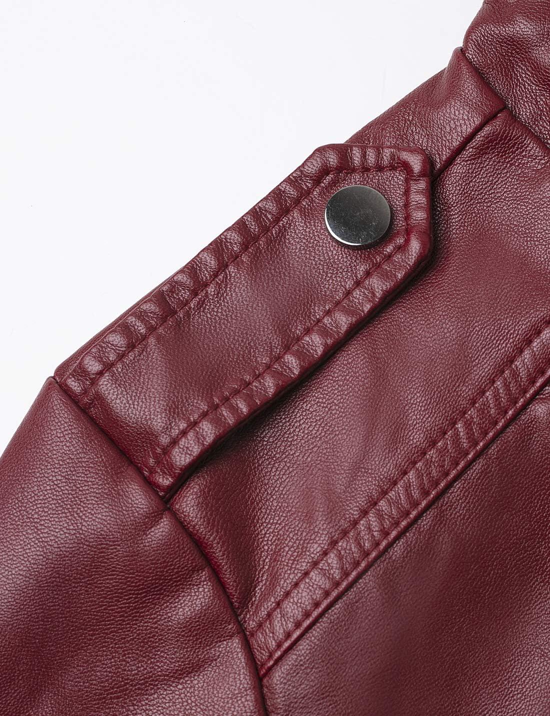 Tanming Women’s Faux Leather Moto Biker Short Coat Jacket(B Wine Red10)