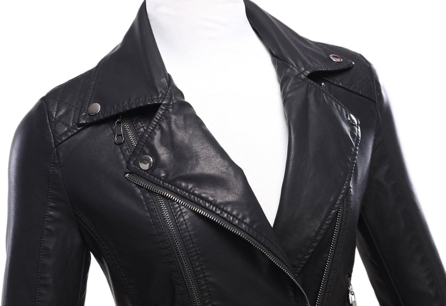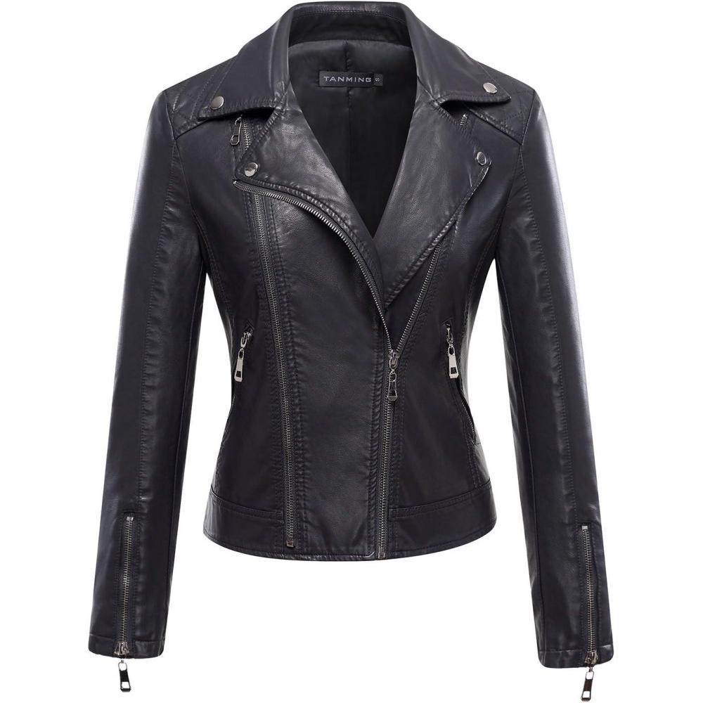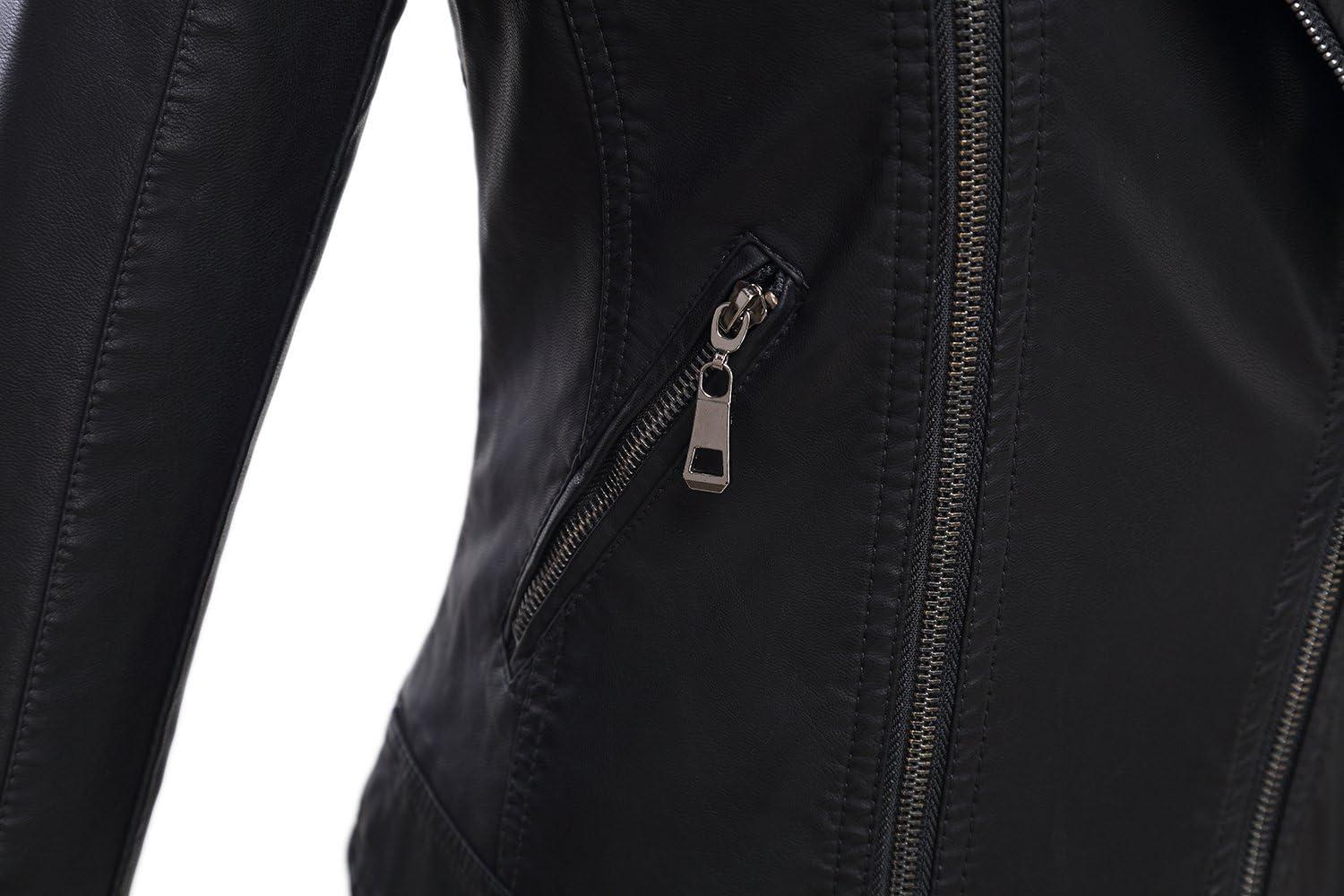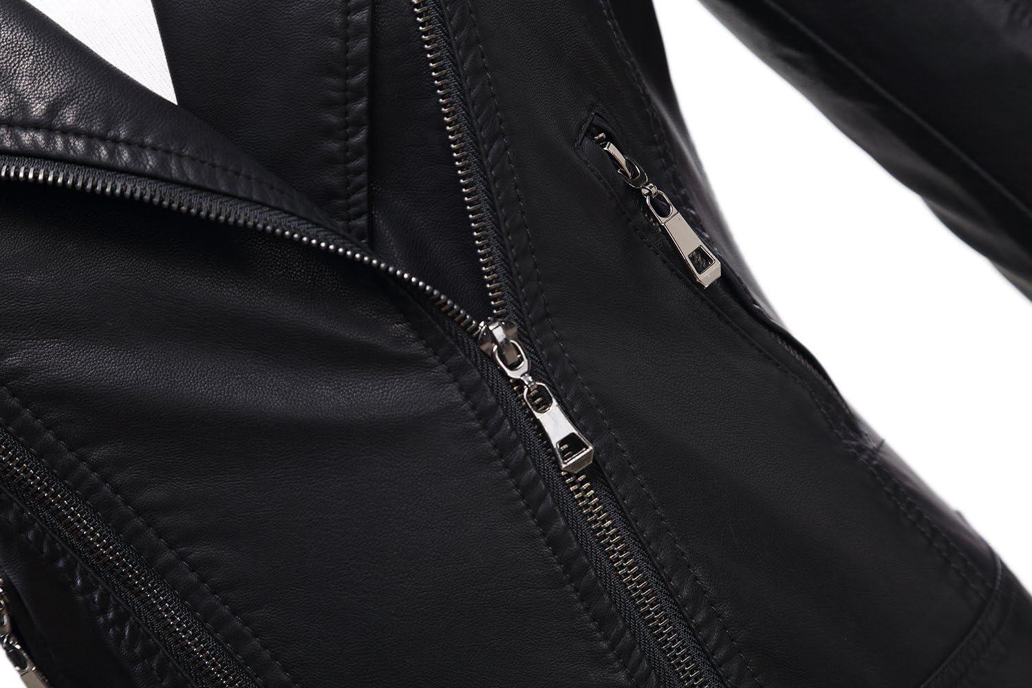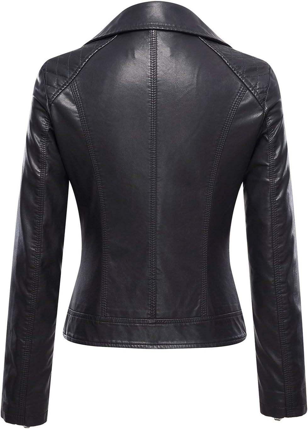 Tanming Women’s Faux Leather Moto Biker Short Coat Jacket(E Black17)