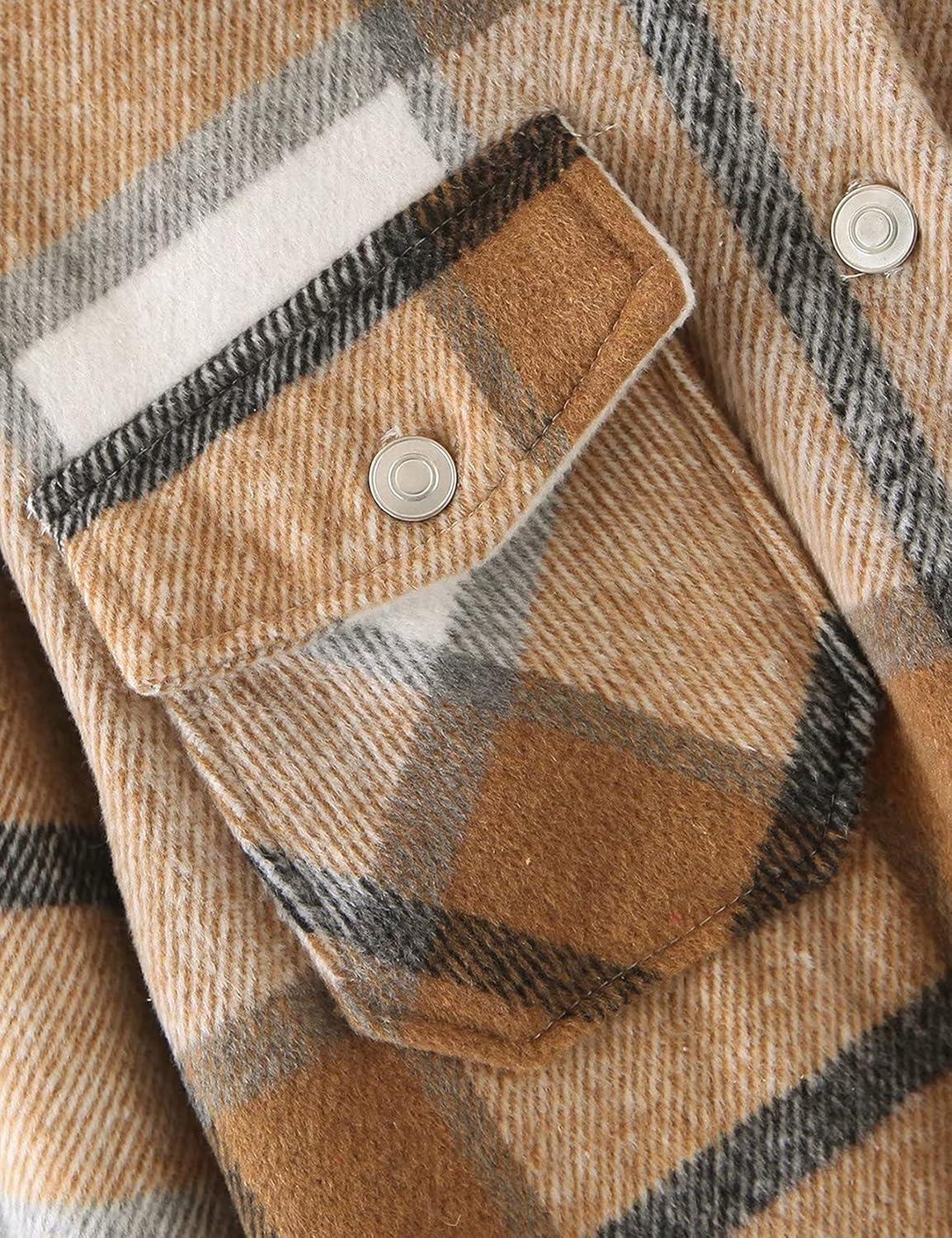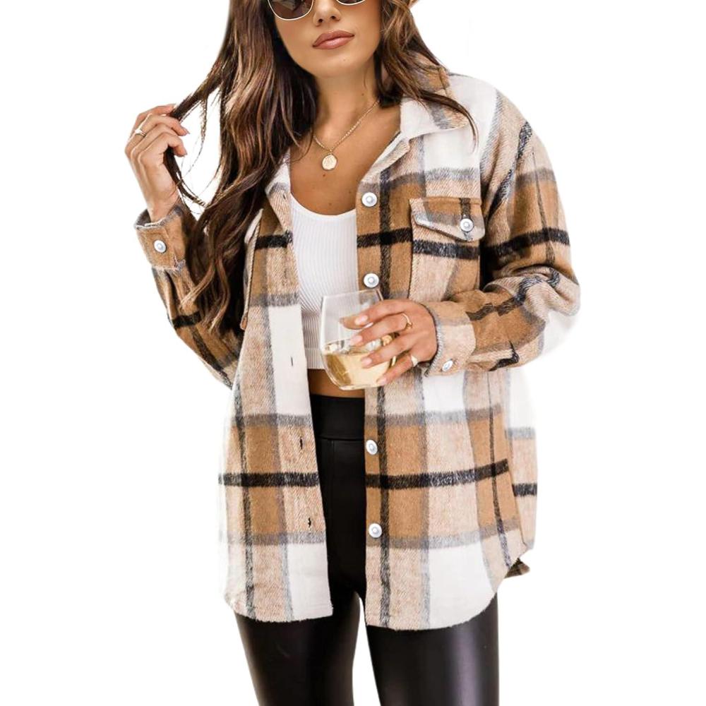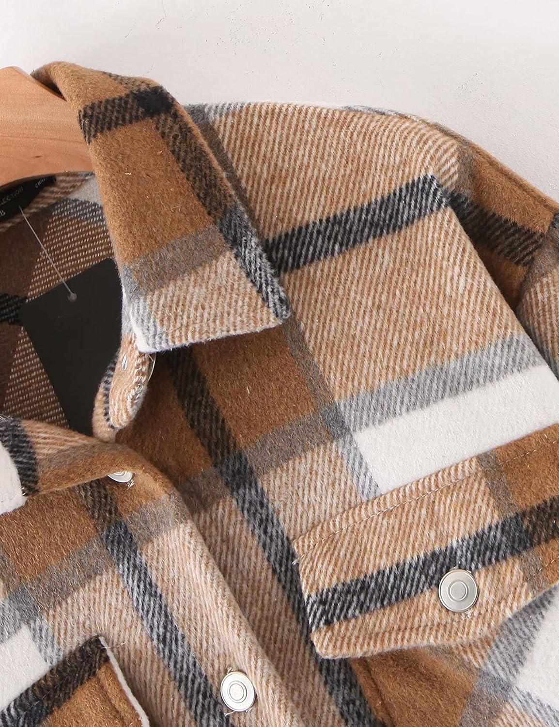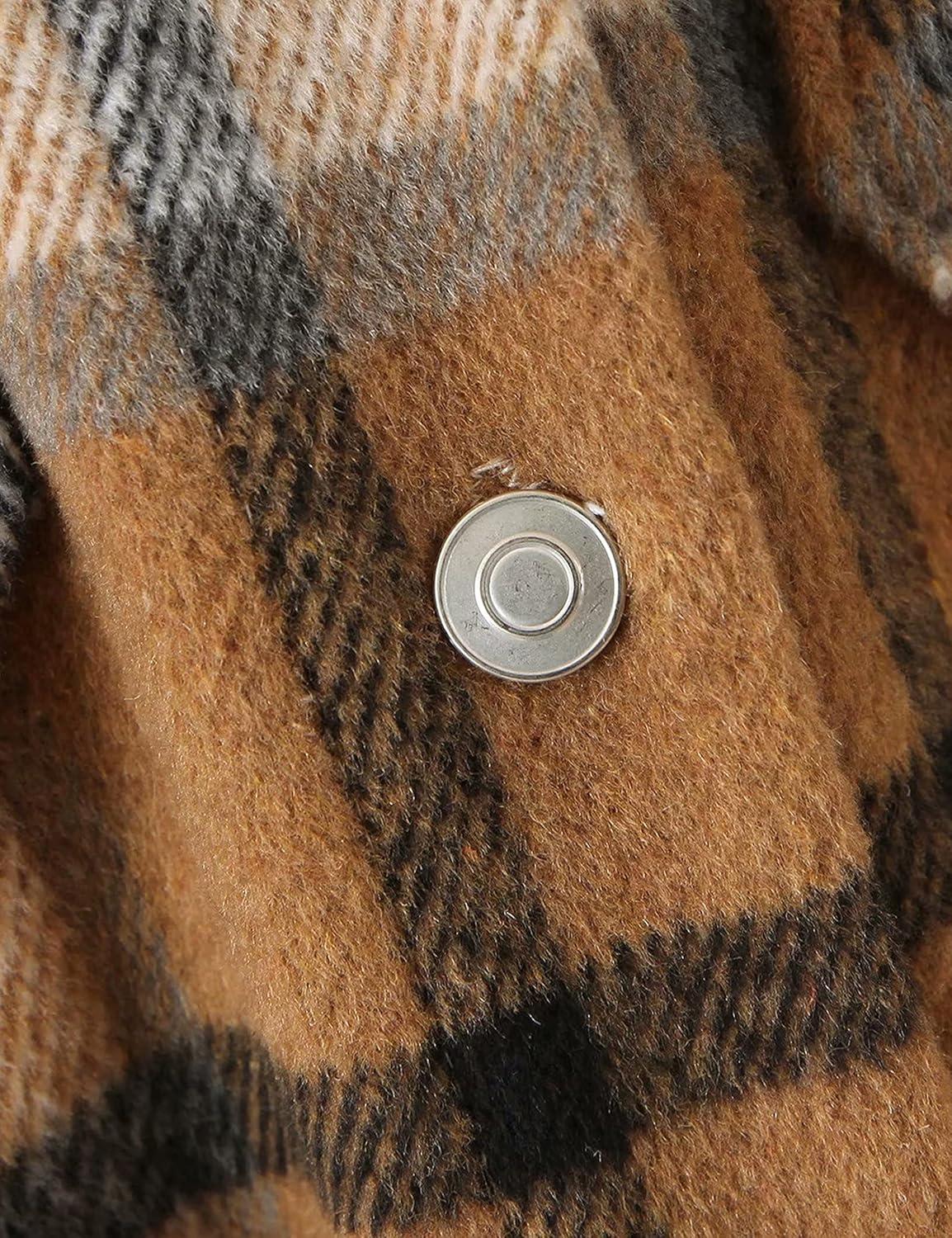 Tanming Womens Flannel Plaid Shacket Wool Blend Button Down Shirt Fall Fashion Jacket(Khaki)