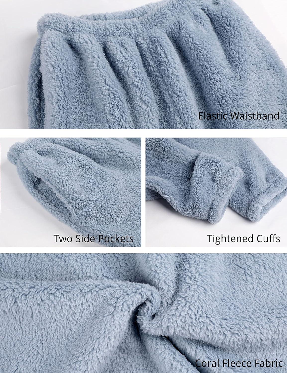 Tanming Womens Fluffy Pajamas Set Fleece Pullover Pants Plush Loungewear Sleepwear(Blue)