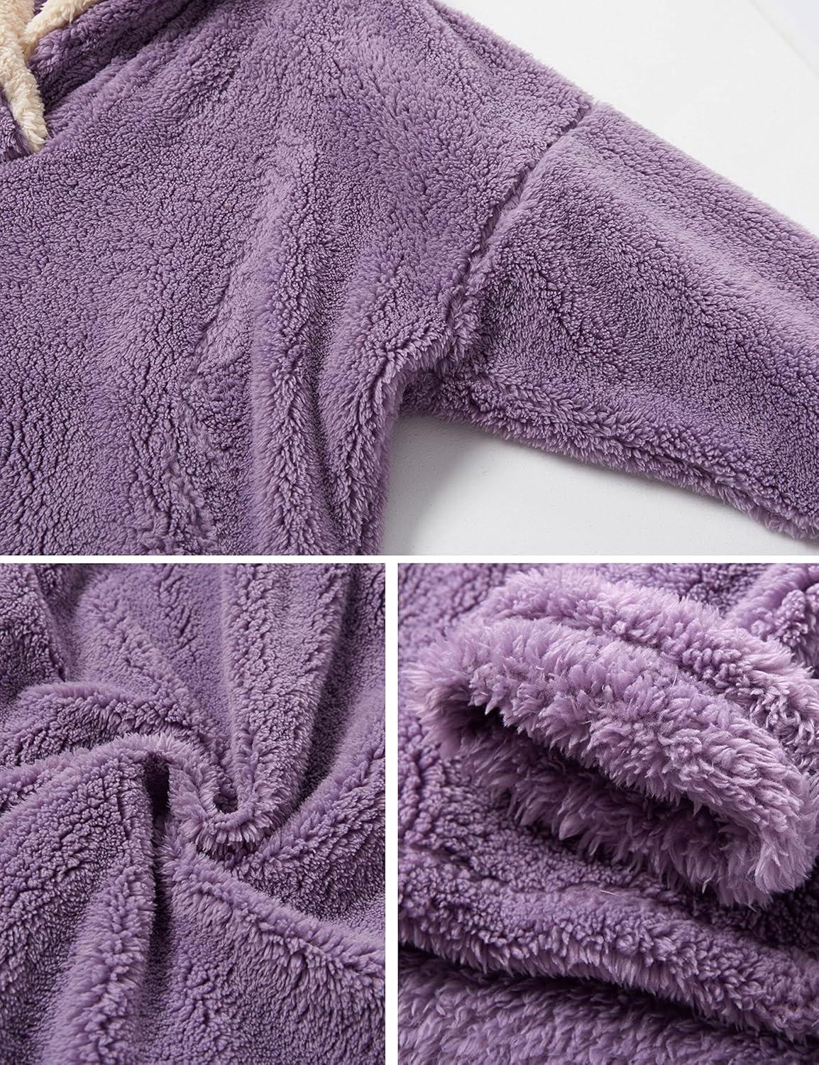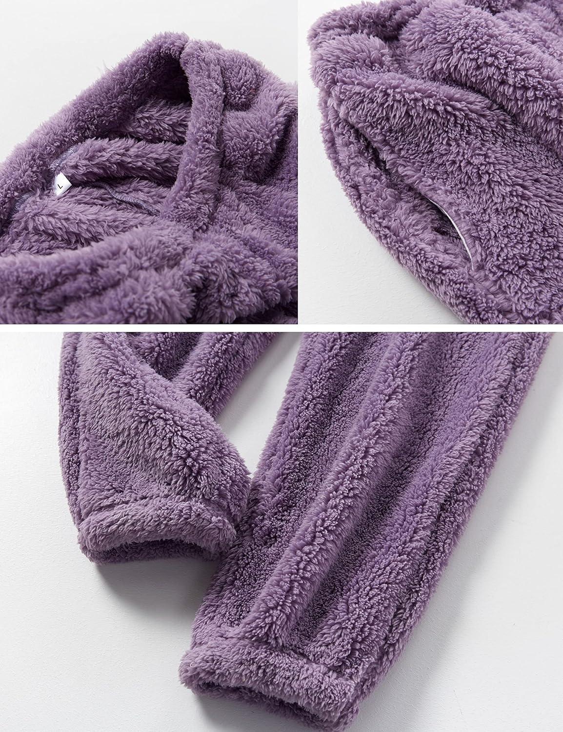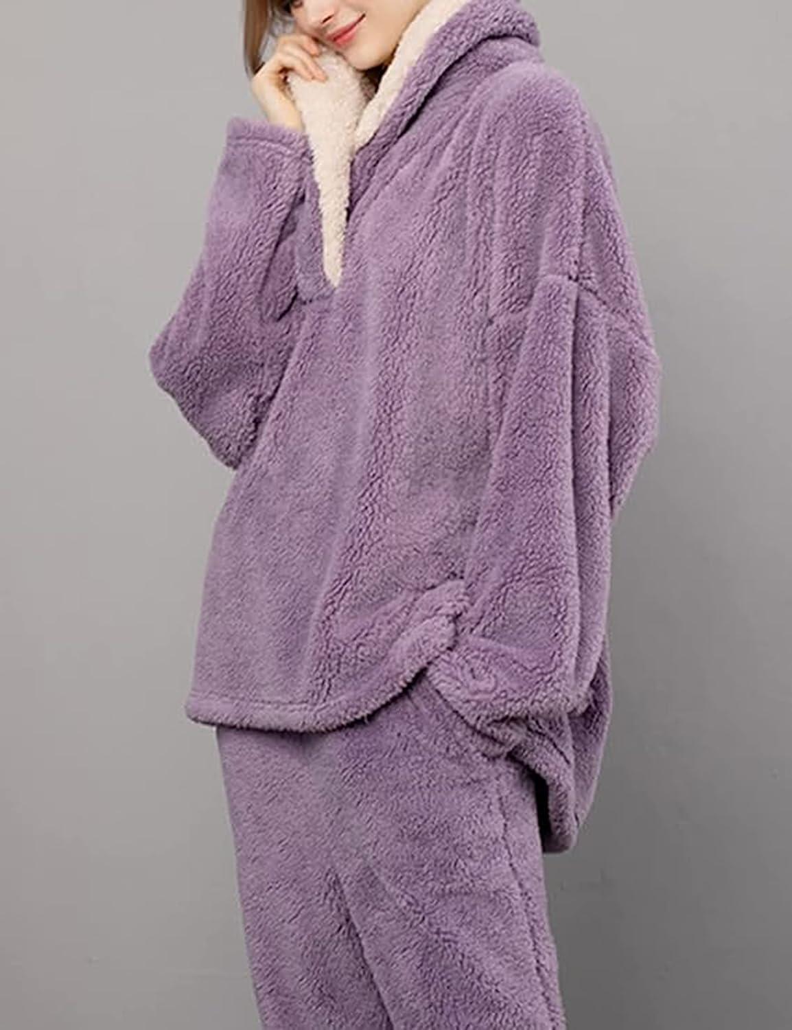Tanming Womens Fluffy Pajamas Set Fleece Pullover Pants Plush Loungewear Sleepwear(Purple)