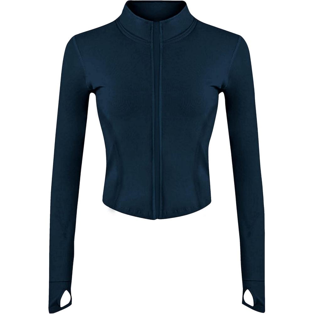 Tanming Women’s Full Zip Seamless Workout Jacket Running Yoga Slim Fit Track Jacket(Navy)