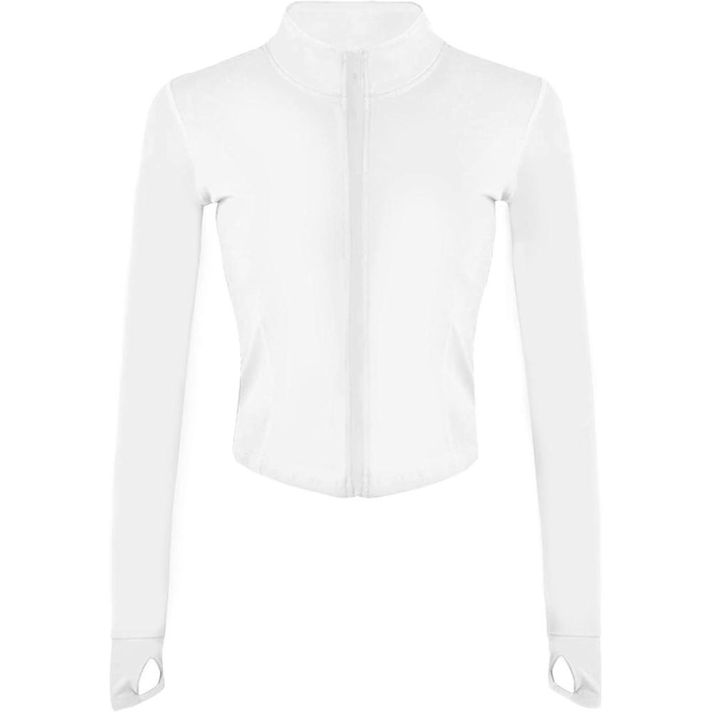 Tanming Women’s Full Zip Seamless Workout Jacket Running Yoga Slim Fit Track Jacket(White)