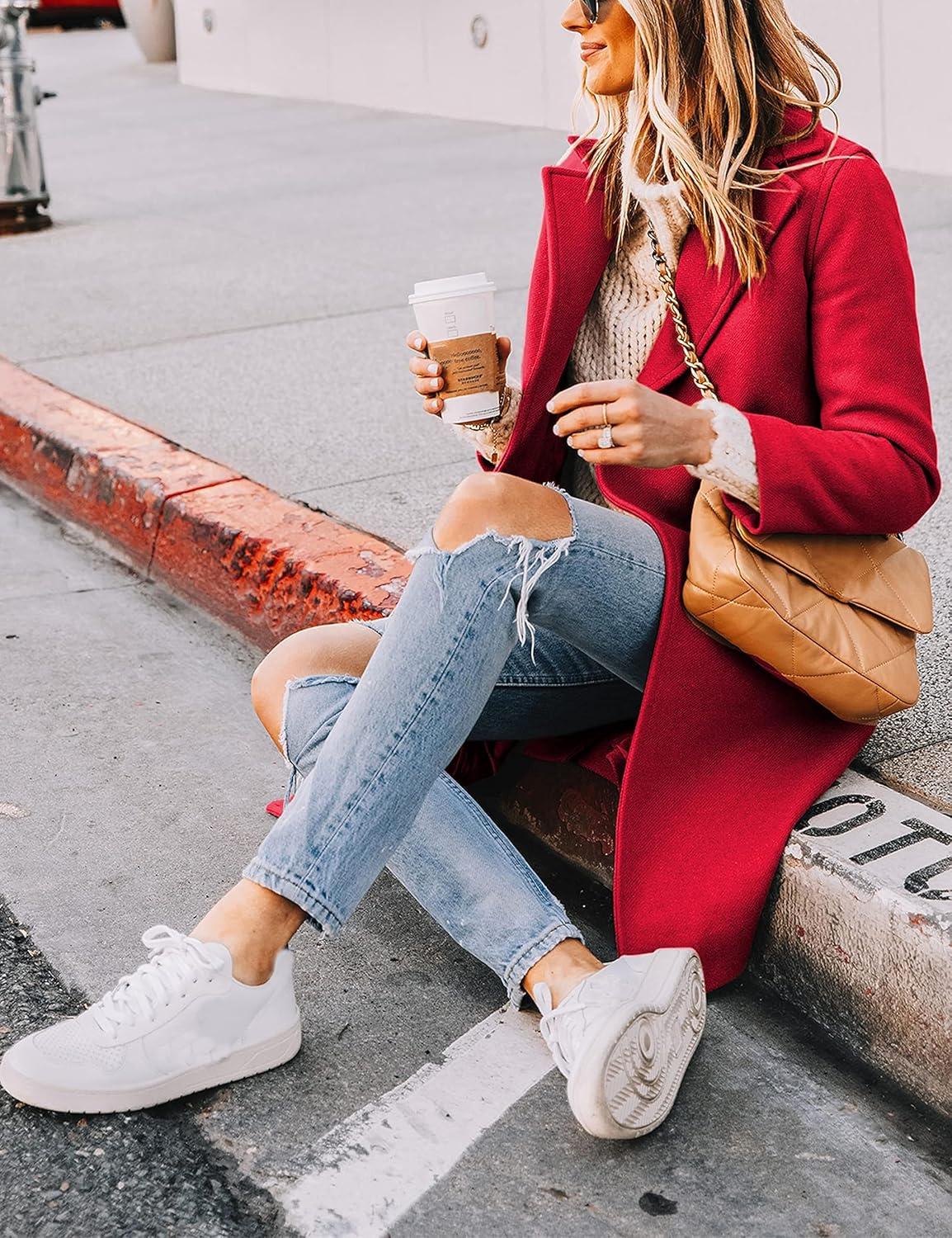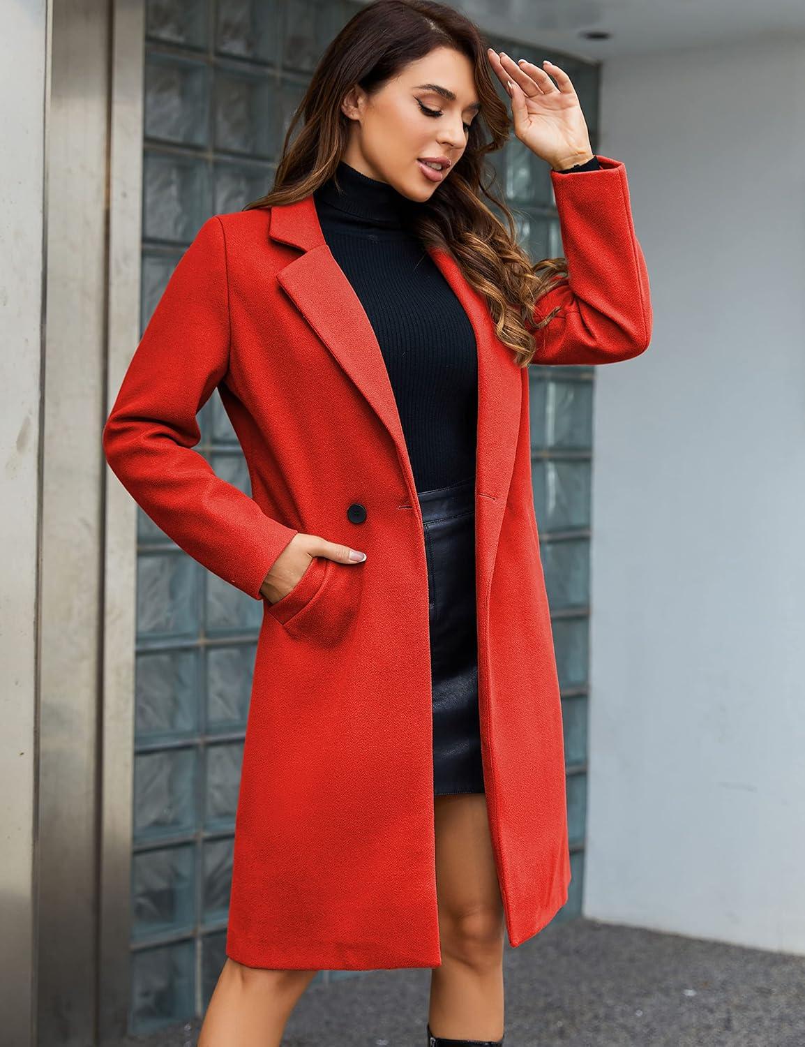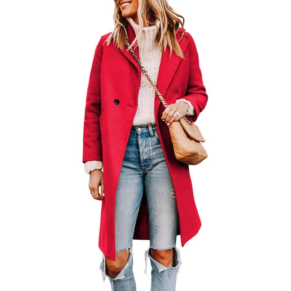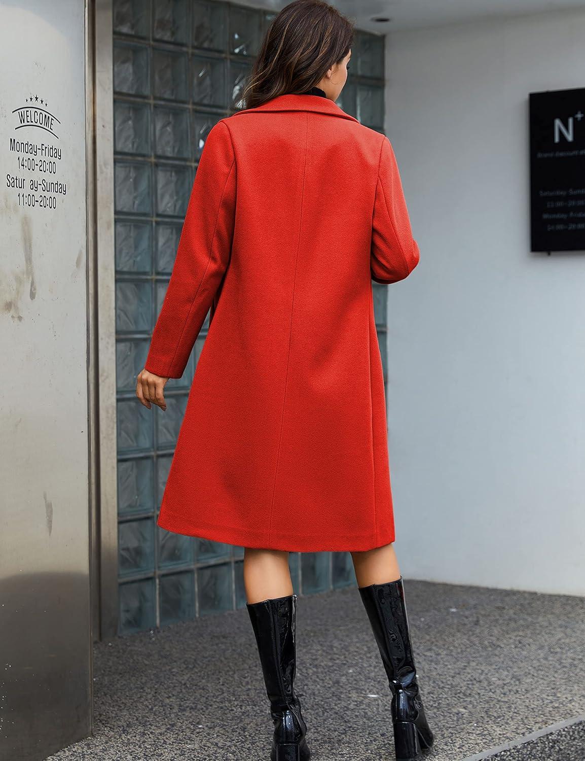 Tanming Women’s Notch Lapel Double Breasted Wool Blend Mid Long Pea Trench Coat(Red)