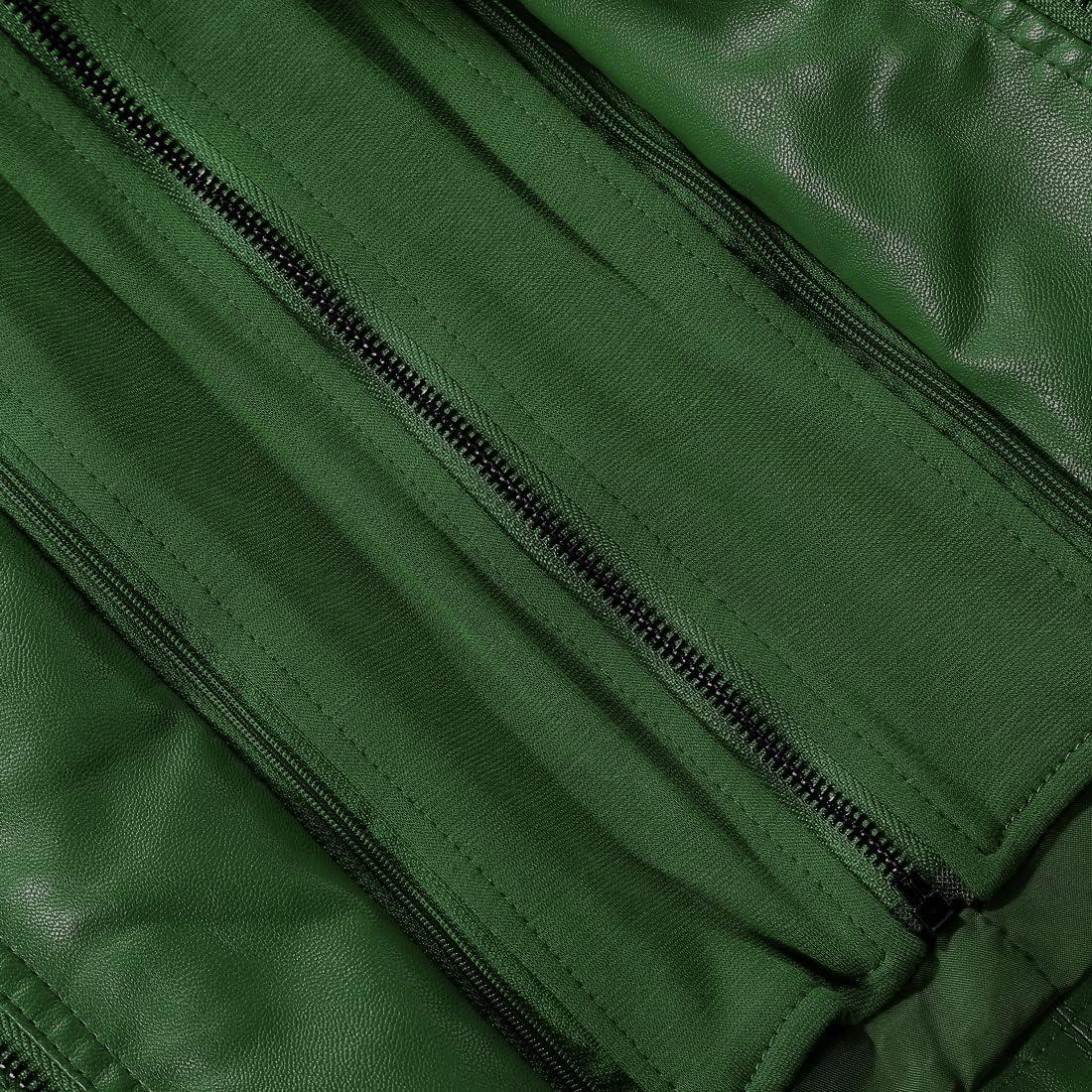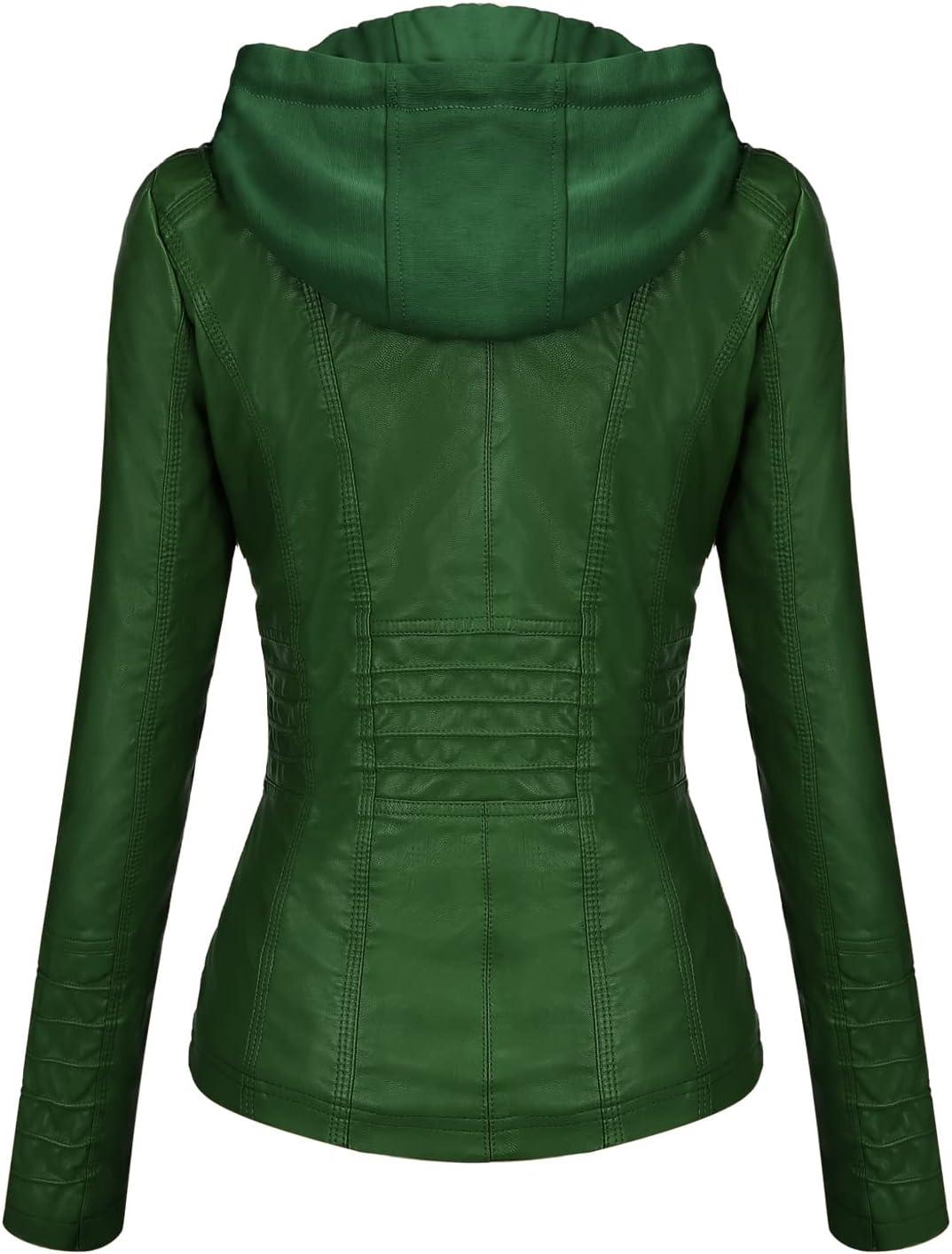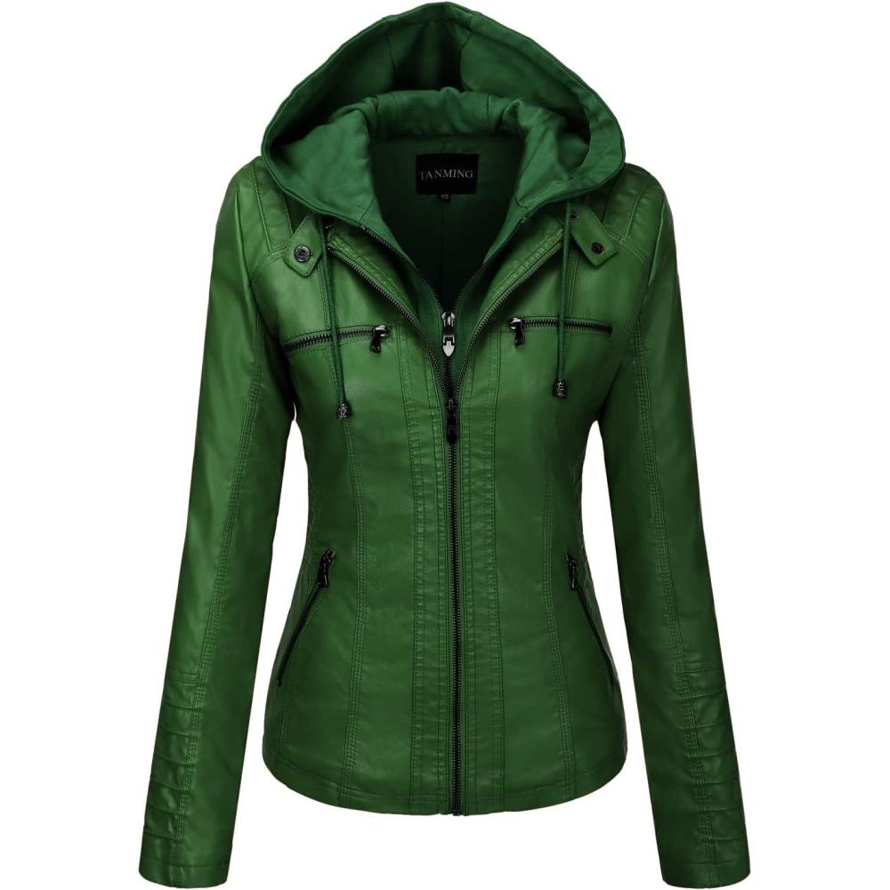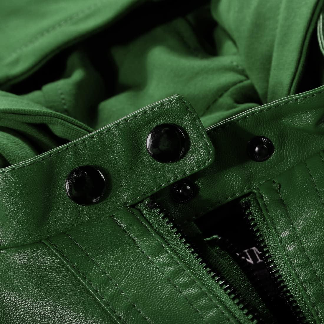 Tanming Women’s Removable Hooded Faux Leather Jackets(Green)